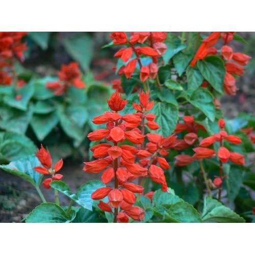 Salvia Coccinea Scarlet Sage (Blood Sage) is an annual variety that produces a mass of beautiful bright red flowers on an upright stem.  Very Pretty.  Flowers from May to First Frost.  Grows to approximately 1m.  Attractive to Bees and  Butterflies.