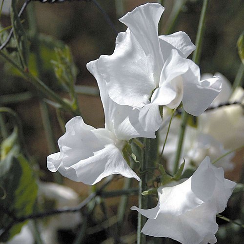 Sweet Pea Dwarf Cupid White produces pure white flowers. Grows to a height of 25cm. Ideal for Tubs and Baskets.